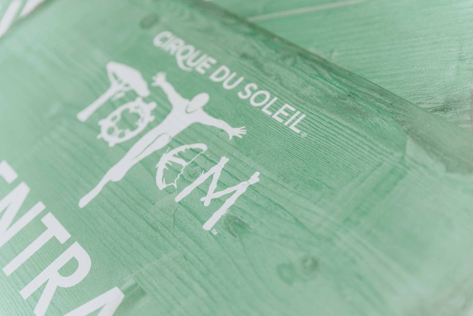 This piece demonstrates how sustainable materials and advanced printing technology can be used to create impactful event signage — artistic, environmentally conscious, and perfectly suited to the Cirque du Soleil aesthetic.